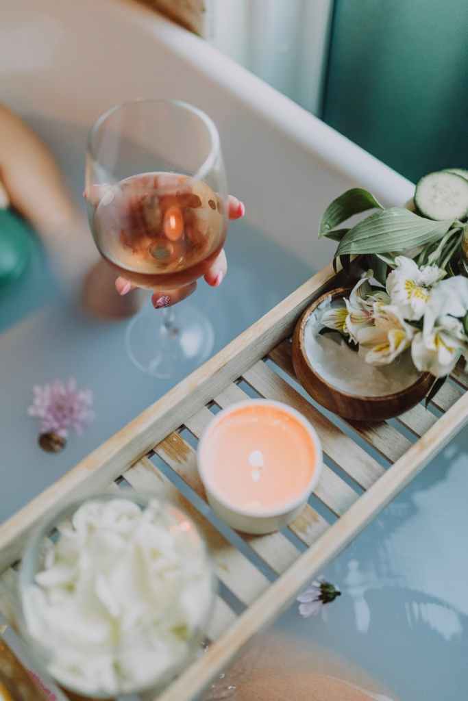 Turn your bathtub into a hot tub (not to hot lol). You must get some LAVENDAR SALT this will be sure to mellow the mood. Light a candle, grab a blue tooth speaker play some spa sounds, get a drink and let it go!